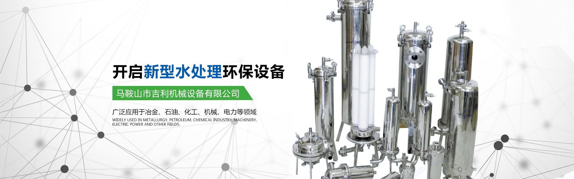 馬鞍山市吉利機(jī)械設(shè)備有限公司位于江南名城一馬鞍山市,交通十分便利。公司具有獨(dú)立法人資格,是集水處理設(shè)備的研發(fā)、設(shè)計、生產(chǎn)、銷售為一體的專業(yè)型企業(yè)。公司的主要產(chǎn)品有高中速過濾器、纖維球過濾器、新型除油過濾器、無閥過濾器、加藥裝置、管道全自動過濾器、淺層砂過濾器、攪拌機(jī)、沙水分離器、管道靜態(tài)混合器、化水設(shè)備、反滲透等膜處理設(shè)備、空氣過濾器等。公司所研發(fā)的產(chǎn)品有占地少、處理效果好、投資省、操作管理方便的優(yōu)點(diǎn),受到客戶的一致好評。